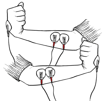 This is a single-participant experiment. The green LED signals you to use the arm you’re familiar with, while the red LED instructs you to switch and move your other arm. Open the SpikeRecorder software and verify that both channels are active before beginning your randomized series of 10 trials.